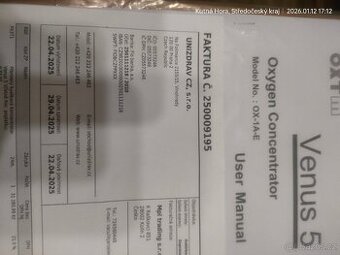 Prodám zánovní přenosný kyslíkový koncentrátor Venus 5. V provozu jen 16 hodin. Kompletní příslušenství viz. foto. Ještě je v záruce
