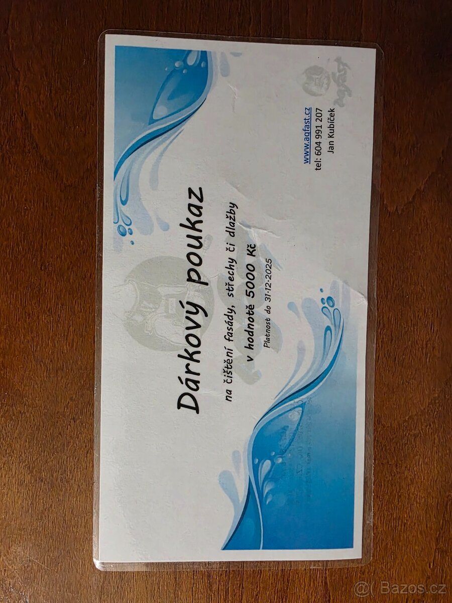 Cena: V textu. Prodám dárkový poukaz na čištění fasády, střechy či dlažby v hodnotě 5000 kč. Platnost do 31.12.2025. Nabízím za cenu 500kč