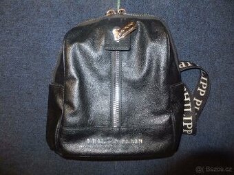 Značkový batoh Philip Plein, na přední straně chybí dvě písmenka, jinak pěkný stav. Možnost při občasné cestě přivézt do Prahy.
