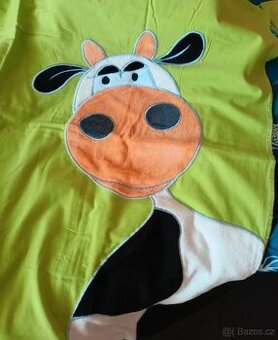 Ve spodním rohu peřiny je semišový obrázek krávy, jinak je čistě zelené i s polštářem , peřina (190*137cm), polštář (93*65cm), mírný prací žmolík