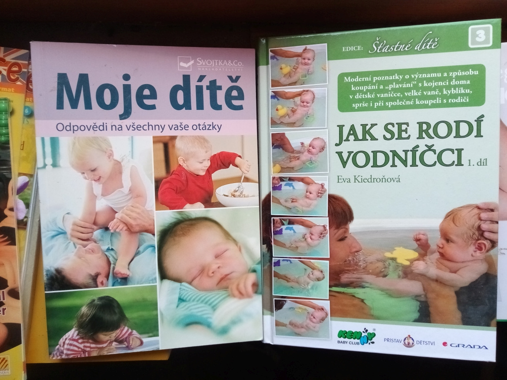 "Jak se rodí vodníčci" Moderní poznatky o významu a způsobu koupání a plavaní s kojenci doma ve vaničce, vaně, sprše i při koupeli s rodiči. Součástí je DVD a přehled jednotlivých úchopů. Grada 2012, 379 stran, stav: jako nová - 250 Kč "Moje dítě" Co dělat, když miminko neustále vyžaduje krmení nebo pláče? návaly vzteku a vzdoru? Kdy začít učit na nočník? Dítě se pořád drží mámy? Tato kniha popisuje zvládání všech možných obtíží, odpoví na vše, co vás zajímá. Svojtka 2010 - 80 Kč Kam na výlet s kočárkem - Čechy CPress Brno 2012, 110 Kč Každá maminka je mozart, Vlastimil Marek 70 Kč Nature baby - CD s uklidňujícími zvuky přírody pro těhotné ženy ale i novorozence - 90 Kč Cena za vše 480 kč. Možno i jednotlivě. Při zaslání přes Zásilkovnu či Balíkovnu příplatek 90 Kč.
