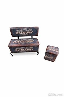 Prodám kovovou lavici s úložným prostorem a kostku na sezení s úložným prostorem. Vše v perfektní kondici. Vše polstrované koženkou s motorkářským dekorem. Prodávám jako celek nikoli jedotlivě.