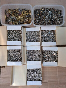 Prodám konvolut kovové galanterie viz foto (něklik tisíc kusů, staré zásoby) druky, přezky, průvleky - vše za 990 Kč.