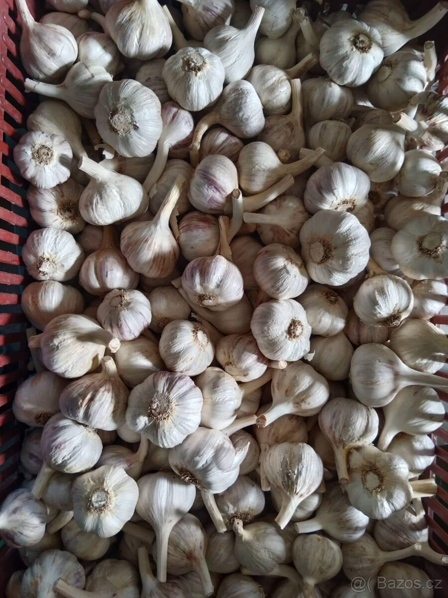 Dobrý den prodám Český česnek odrůdy Ruský paličák, skvělé a velmi silné chuti . Velmi dobrá skladovatelnost , sklizen a pečlivě ručně očištěn. Cena : Malý 60 Kč . Velký 140 Kč , při odběru nad 100kg cena 120 Kč, česnek na klackách 160Kč. Z důvodu dobrého počasí byla dřívější sklizeň a již je usušen a připravuje se k prodeji . Před koupí lze i ochutnat kvalitu a dílu česneku . Kontakt 606931113