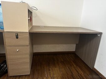 Pracovní stoly s poličkou a skříňkou – 6 ks, 650 Kč / ks 150(120+30)x 110/75x75