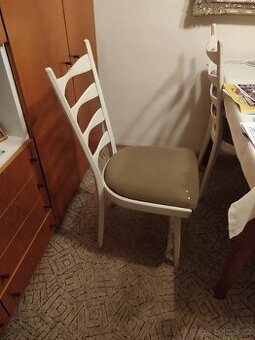 Cena: Dohodou. 4x židle polstrovaná - šířka 41cm, hloubka 43cm, výška 93cm, výška sedu 48cm, nejlépe i se stolem dohromady