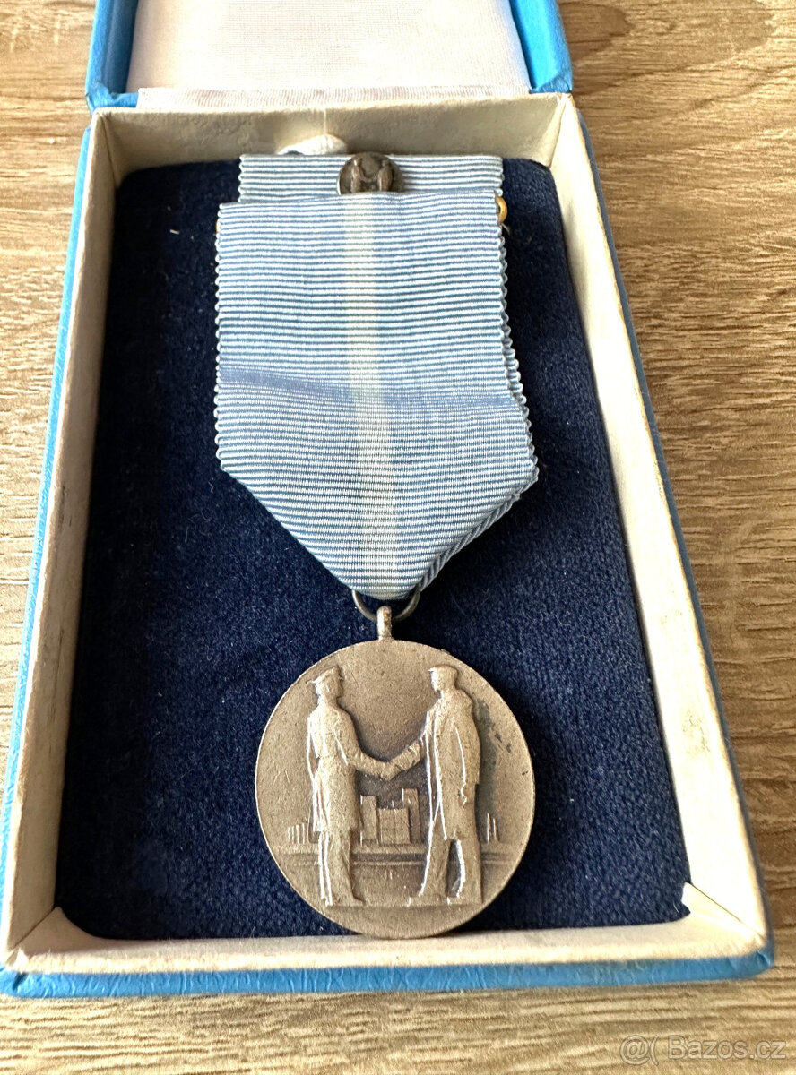 medaile PSVB- pomocná stráž VB ,originál ze sbírky -vzácná slovenská verze - originál , kompletní se stužkou v etui foto z knížky o Policejních medailích je ilustrační ,