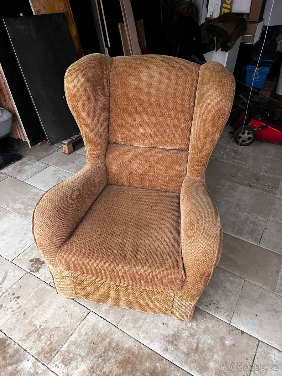 Starší kvalitní křeslo ušák v dobrém stavu. K vyzvednutí v Brně po předchozí domluvě nebo dovezu v rámci Brna, případně na trase Brno - Uherské Hradiště.