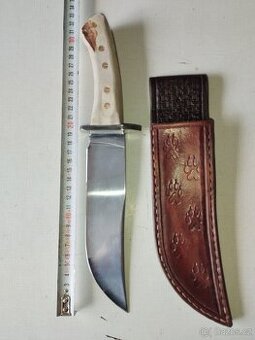 Lovecký i zalesacky,stavba, mohutná čepel nerez od fi.Jatagan, jelení paroh na strence, vhodný i pro velkou ruku ,holstr z české kůže stipenky , vše ruční výroba