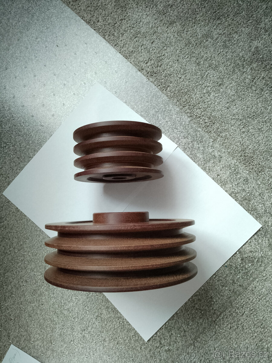 Prodám 2 řemenice: 1)průměr 220mm (L=87mm), šířka drážky 17mm (3x), průměr otvoru 28 mm, 2)průměr 150mm (L=78mm), šířka drážky 17mm (3x), průměr otvoru 25 mm. Cena za oba kusy. Možno i zaslat. (Č.Velenice, okr.JH)