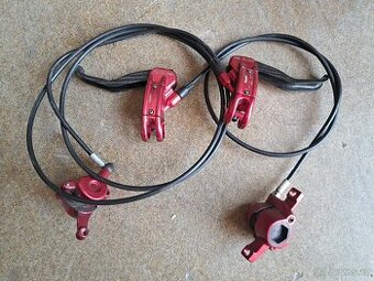 Přední je na náhradní díly. V páčce není gufero, jinak kompletní. Zadní bez problémů. Karbonové páky bez poškození.