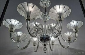 Starožitný Art Deco celoskleněný lustr.