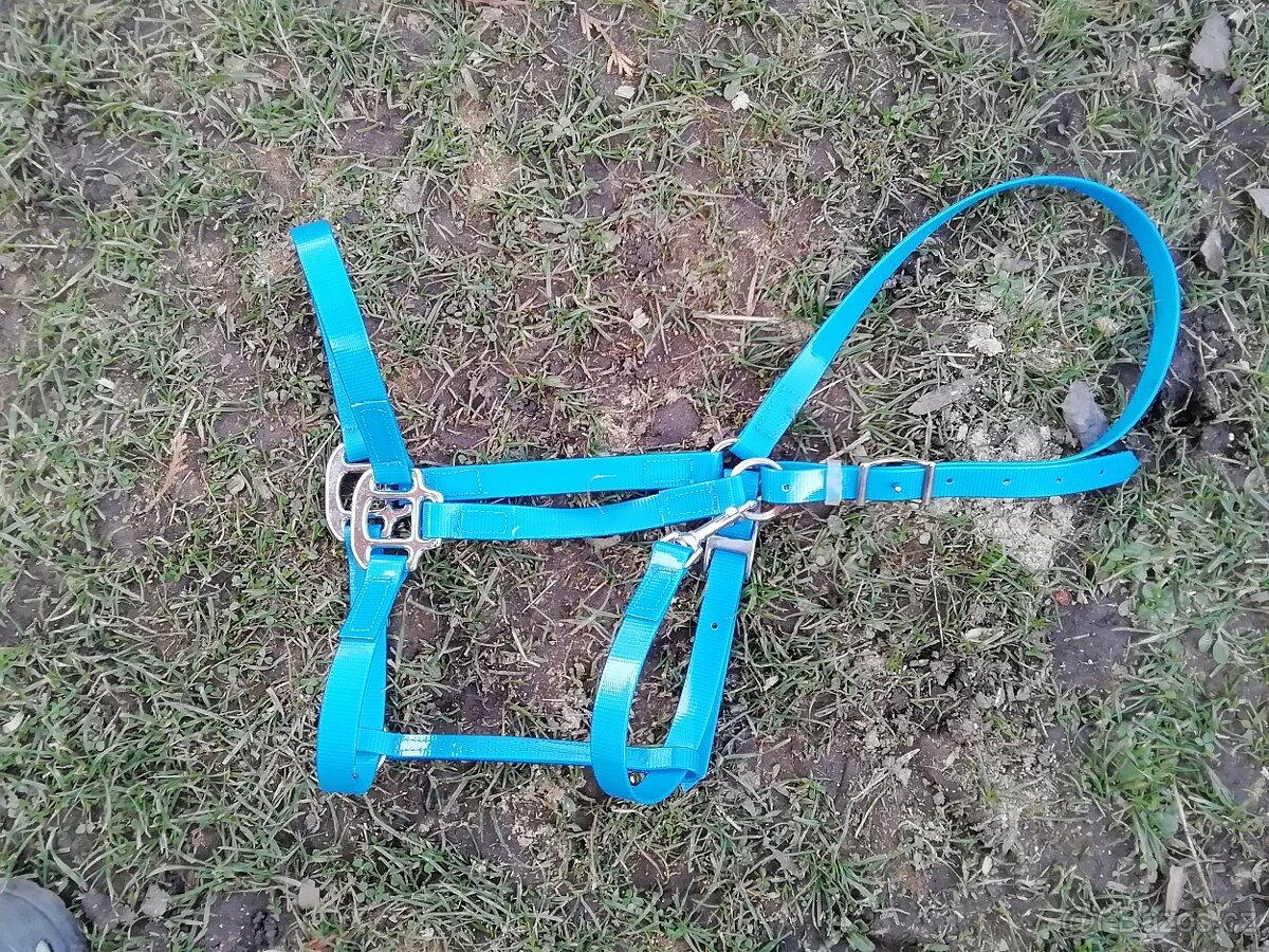 prodám novou ohlávku z biothane materiálu zn. 4horse - modrá, velikost stavitelná Cob/full