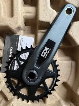 Prodám nové, nikdy nejeté kliky SRAM GX Eagle Transmission (T-Type), sundané z nového kola (přechod na jiný model). Kliky jsou v perfektním stavu, bez jediného škrábance. Specifikace: Délka klik: 170 mm Převodník: 34 zubů (T-Type, Direct Mount) Osa: DUB Wide (optimální pro moderní rámy s chainline 55 mm) Offset: 3 mm Kompatibilita: Určeno pro 12-rychlostní systémy SRAM Eagle Transmission (vyžaduje T-Type řetěz). Ideální upgrade pro někoho, kdo staví nové kolo nebo chce vyměnit delší kliky za 170mm pro lepší průchodnost terénem.