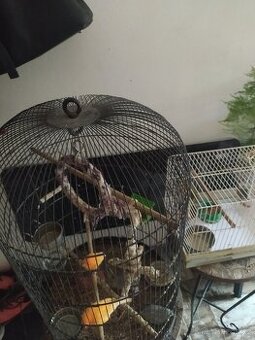 Prodám dvě klece jedna krásná kovová se dřevem kulatá PC. 3000 Kč v kleci jsou 3 kanarci jeden z toho je pár oranžové + dvě malé čínské křepelky pobíhající na dně klece druhá menší klec se zelenym krásným sameckem kanarka krásne zpívají k tomu přidám pytel 15 kg krmení pro velké papoušky a 15 kg krmení pro střední ptáčky končím s chovem stěhuji se na byt za vše super cena 3000 Kč
