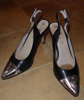 Krásné kožené lodičky zn. Caprice. Drobné vady - podpatek (viz foto), vlepená gelová vložka - lze vyndat. Známky běžného nošení. Zásilkovna 89,-