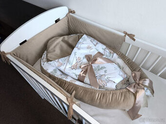 Nová souprava do postýlky se skládá z hnízdečka, rychlozavinovačky a z mantinelu kolem celé postýlky. Vše je ušité z kvalitní 100% bavlny v kombinaci s velvetem v pískové barvě. Možnosti doručení: - balíkovna - 75Kč - zásilkovna - 89Kč - doručení na adresu - 109Kč - osobní odběr v Krnově, po domluvě v Opavě Vzhledem k zakázkovému šití lze vybrat i jinou kombinaci vzorůi materiálů.