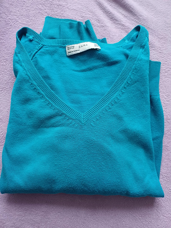 bohužel je mi těsný, je to lehčí svetr do V. Barva odpovídá první a čtvrté fotce. vel. 40/L zn. Zara