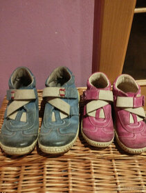 Celokožená kotníčková obuv z broušené kůže na suchý zip přes nárt, s koženou podšívkou a koženou stélkou s podporou podélné klenby nožní. Růžové vel. 22 cena 200 Kč, stýlka 140 mm modré vel. 27 cena 100 Kč 155mm Osobní předání nebo posílám balíkovnou ,zásilkovnou. Po domluvě dovezu do Chotětova.