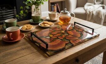 Tento podnos není jen praktický doplněk, ale autorský kus interiérového designu. Každý detail je ručně skládaný tak, aby vznikla harmonická mozaika z přírodních materiálů — dřeva, mechu a kamínků — zalitá do křišťálově čisté pryskyřice. Každý kus je jedinečný originál, který nelze zopakovat. ✨ Proč je tento podnos výjimečný - Ručně komponovaná mozaika z přírodních prvků, která vyžaduje precizní skládání a vícefázové zalévání epoxidem. - Prémiové materiály: kvalitní dřevo, mech a kamínky vytvářejí autentickou atmosféru lesa. - Velkorysý rozměr 45,5 × 30,5 × 2 cm, díky kterému působí jako výrazný designový prvek. - Černé kovové úchyty dodávají eleganci a zvyšují komfort při používání. - Protiskluzové nožičky chrání povrch nábytku a zajišťují stabilitu. - Každý kus je originální umělecký objekt, ne sériový výrobek. 🏡 Kde vynikne - jako dominantní dekorace na konferenčním stolku - při servírování čaje, kávy nebo drobného občerstvení - jako luxusní dárek pro milovníky pří