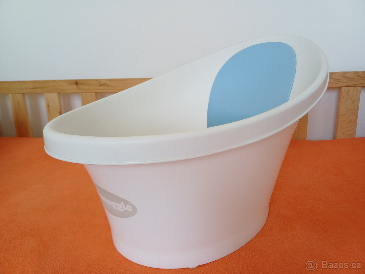 Vanička / koupací kyblík Shnuggle se zarážkou. Ušetří místo i vodu. Lehce škrábnutá na opěrce, viz foto. Předem upozorňuji, že částečné zatmavnutí opěrky je skutečné a nejedná se o stín. Osobní předání Brno, po domluvě Kroměříž.