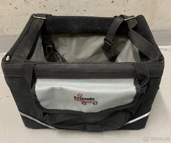 Košík na kolo pro pejska do 6 kg. Vyztužený rám, vyjímatelné dno pro snadné čištění, bezpečnostní popruh s karabinou na postroj. Rozměr: 38 × 25 × 25 cm. Stále ve slušném použitelném stavu. Ideálně osobní převzetí Praha 3.