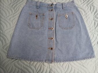Prodám dívčí riflovou sukni, propínací střižená do A, bez vad, top stav. Cena 120,-- Kč.