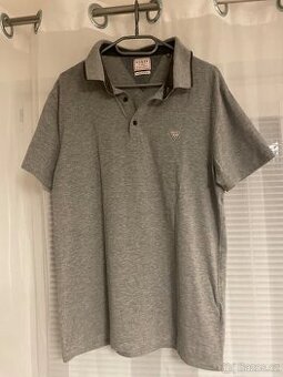 Pánské polo triko s límečkem. Extra slim fit, velikost L. Šedé, černý detail kolem krku. Hladké. Osobní odběr Praha 5. Zásilkovna od 89 Kč na výdejní místo.