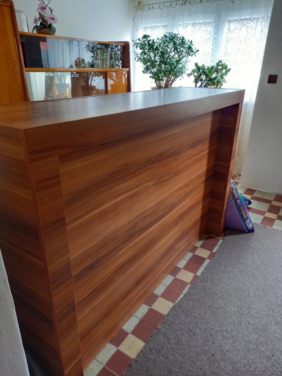 Dobrý den, Ráda bych prodala tento barový pult, vyrobený ze dřeva. Je v hezkém stavu. Výška: 115,5 cm Délka: 170 cm Šířka: 50,5 cm Nutný vlastní odvoz - Bydlíme na Svitavsku, pro bližší info prosím pište. Cena: 4000,- kč