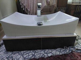 Cena: V textu. PRODÁM velké bílé umyvadlo š 66cm,h 45 cm,v okrajích 15cm, uprostřed 10cm, které je přilepené silikonem na SOKLU. PC umyvadla 1790 Kč nyní cena jen 600 Kč Sokl o rozměrech š 68 cm,h 48 cm,v 16,5 cm je obložen dlaždicemi a chromovými lištami. Sokl s umyvadlem se jen nasune na předem připravené dvě traverzy a tím ušetříte za skříňku po umyvadlem.Sokl nechám k umyvadlu ZDARMA Chromová baterie v 18 cm PC 1590 Kč, nyní jen 500 Kč Chromový hranatý klikkak PC 550KČ nyní 200 Kč Cena za celek 1300 Kč Při rychlém a slušném jednání Zdarma přidám el. kartáček na zuby s novými nástavci a 2x chromové kulaté držáky na ručníky!! Pouze osobní odběr, nebo předání dle telefonické domluvy v Mostě Veškeré informace POUZE VOLEJTE děkuji