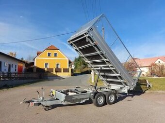 největší třístranný sklápěč s pletivovou-gitter nástavbou, objem 11,85 m/3, sklápění pomocí hydrauliky s ele. ovládáním, zesílený základní rám ocelový žárově zinkovaný, Alu elox. bočnice výšky 350mm, sklopné a plně odnímatelné, v případě potřeby lze demontovat na plato, pletivová-gitter nástavba výšky 1000mm nad bočnice, celkem 1350mm od podlahy, boky a zadek gitter výklopné a odnímatelné, podlaha 15mm silná voděodolná překližka s pozink plechem, kotvicí oka v podlaze, schránky pro nájezdy, příprava pro opěrné nohy, kompletní LED osvětlení Stav: Ojeté Rok a měsíc výroby: 01.01.2023 VIN: TKXAPH235PDBA2596 Karoserie: Sklápěč Barva: Šedá Hmotnost: 3500 Nosnost: 2300 První majitel: Ano Země původu: Česká republika Výbava: Zadní mlhovka, S couvacím světlem, Vidlice 13-pol, Opěrné kolečko, Kotvící oka, Brzděný, V oj, Hliníkové bočnice