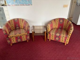 Prodám křesla a stolek viz. foto, stolek má rozměr 50 x 50 cm - kus 150 kč vše za 400 kč.
