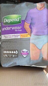 Prodám pánské inkontinenční kalhotky Depend (8 kapek)vel.L/XL šedé barvy.V balení je 9 ks. Nabízím 12 balíků. Cena 100 Kč za balík nebo 1000 Kč za všechny. Cena v lékárně 201 Kč za balík. Nezasílám-pouze osobní odběr.
