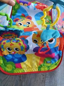 Hrací deka s tunelem je ve velmi dobrém stavu. Popis: zvířátka se stala motivem pro barevný potisk hrací deky s tunelem, kterým mohou děti odvážně prolézat. Přednosti: rozvojí zrak a hrubou motoriku. Skladba a funkčnost: závěsný síťovaný tunel zavěsná zvířátka s kousátky hračky jsou odnímací pro samostatnou hru podložku lze lehce složit a vézt s sebou. Vhodné pro děti od narození Materiál: textil Rozměry podložky: 66,5 x 32 cm Rozměr balení: 58 x 50,5 x 6 cm Parametry: délka 90 cm, šířka 50 cm.