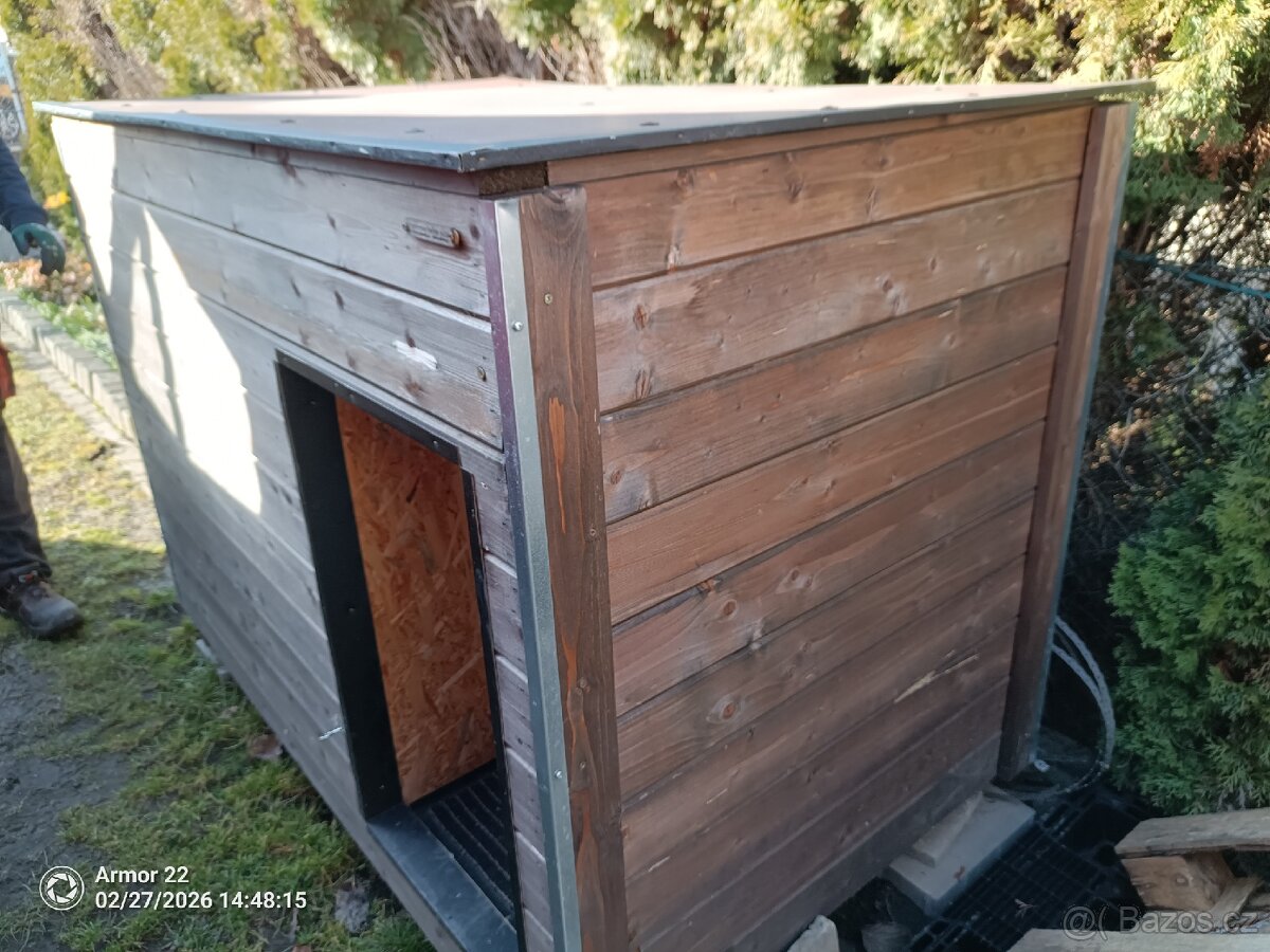 Prodám zateplenou boudu pro psa. Výška 122 cm, šířka 164 cm, hloubka 100 cm.