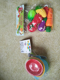Sada nádobí barevný plast 12 ks v síťce - 90,- Kč Zelenina krájecí plast s prkénkém a nožem v sáčku 110,- Kč I jako komplet 190,- Kč