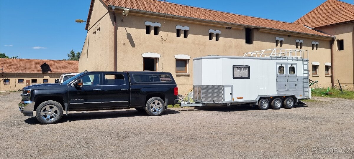 Prodám přepravník na dva koně s obytnou částí. Sedlovna v zadní části. Na bocích úložné prostory. Obytná část plně vybavená. Cena 600 000 Kč