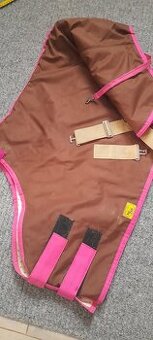 Nabízím nepromokavou deku,lehce zateplenou na minihorse. Byla šitá v krejčovství. Bohužel nám nesedí. Má zapínání na suche zipy a křížové zapínání pod břichem. Zada- viz foto 82cm.