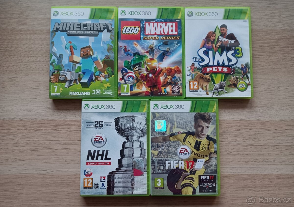 Prodám hry na Xbox 360. Hry jsou v hezkém stavu a plně fuknkční. Inzerát platí do smazání! Lze zaslat poštou/Zásilkovou. Ceny her : 1) Minecraft - 700,-Kč 2) Lego Marvel Super Heroes - 300,-Kč 3) The Sims 3 PETS (Mazlíčci) - 400,-Kč 4) NHL 2018 - Legacy Edition CZ - 350,-Kč 5) FIFA 17 CZ - 300,-Kč