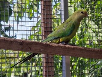 Nabízím papouška nádherného - loňský kroužkovaný samec. Z celoroční venkovní voliéry. Momentálně v proletovačce 6m. Je v dobré kondici a dobře stavění.
