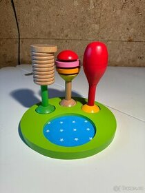 Dřevěná chrastítka s bubínkem. Dobrý stav.