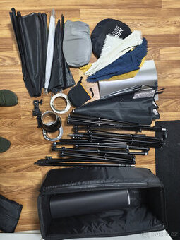 ZDravím, dávám na prodej přenosnou polstrovanou brašnu s obsahem nevyužitého příslušenství co jsem měl na focení. Bez záruky, obsahuje 6 stativů, jeden neměl upevňovací šroub co jsem si všimhl, jinak by to mělo být ok, pak dvě odrazné desky, plátěná látka na pozadí při focení, softboxy (bajonet Bowens), odrazné deštníky, pozadí. Jen osobní převzetí v Třeboni.