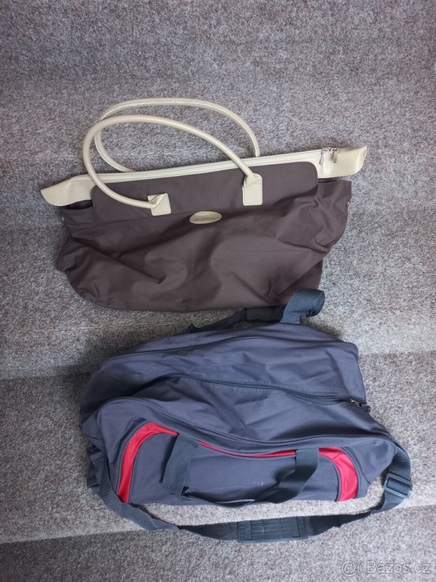 Prodám sportovní tašku a hnědou tašku, obojí přes rameno. á 50 Kč - hnědá délka 45 cm, výška 25 cm, šířka 23 cm - sportovní 51x25x22. ________________________