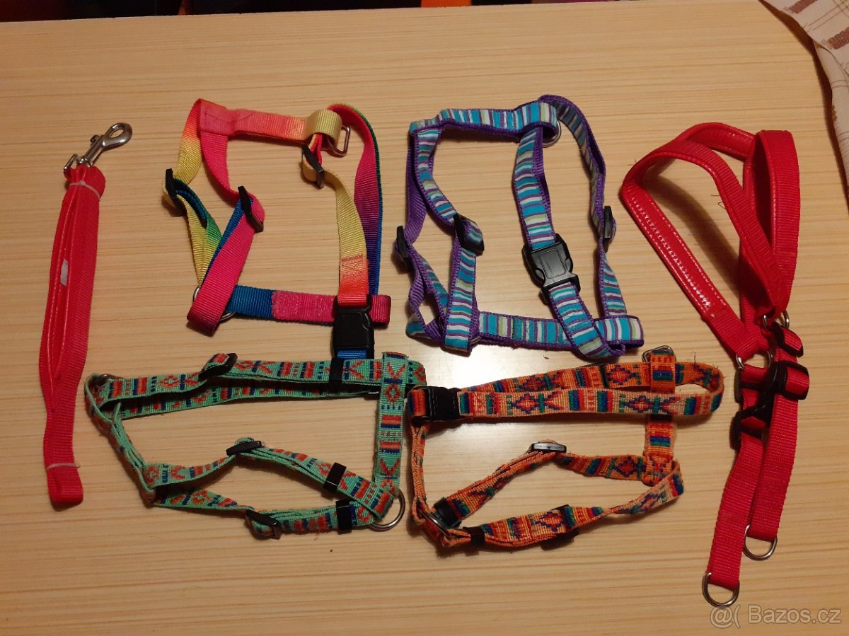 Prodám nové i málo používané psí popruhy (6 ks) na malého až středního pejska. Možno prodat i jednotlivě.