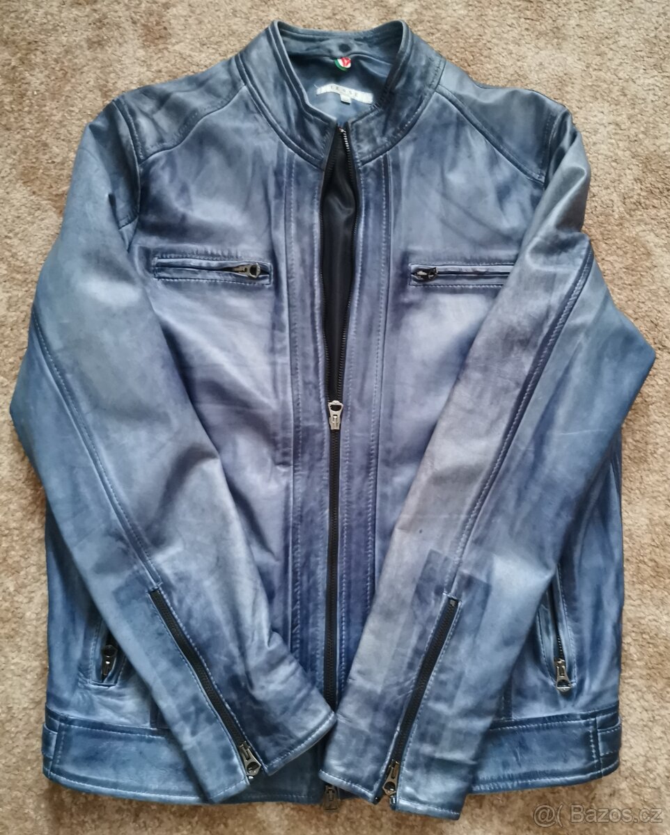 Krásná, jemná kůže, netrefená velikost. Pánská M-L, míry na fotkách. Modrá barva. Cena 2300 Kč plus doprava.