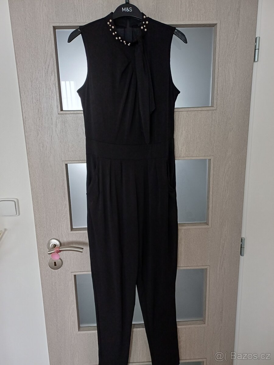 Orsay overal vel. M černá barva, nahoře zajímavá aplikace perličky, vázačka a nařasení v oblasti hrudníku, vzadu zapínání na zip, kapsy. Cena 250 Kč. Možnost osobního odběru Praha 4 Braník nebo zaslání.