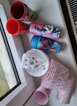 Plastové kelímky a misky. 21 kelimku, 6 misek.