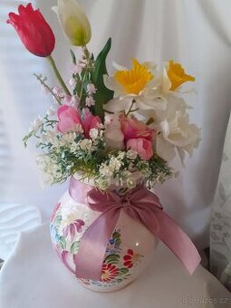 Velikonoční dekorace v ručně malovaném chodském džbánku 🌸 Výška cca 35 cm. Pěkný dárek na stůl nebo parapet. Cena 690 Kč – při rychlém jednání možná dohoda. Pečlivě zabalím a pošlu Zásilkovnou