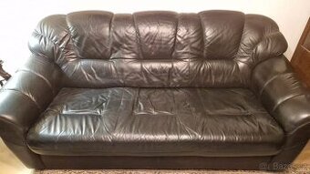 Sedací souprava kožená černá třídílná. Sedačka třímístná a dvě křesla. Rozměr trojsedáku 195x87x85cm a křesla 2ks 100x85x90cm.