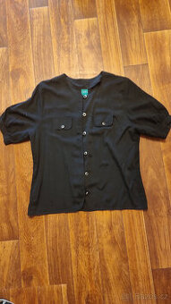 Slušivá dámská halenka s ozdobnými knoflíky a falešnými náprsními kapsami. Nošené, ale vady jsem nenašla. Barva je černá, odpovídá sytějším fotografiím bez metru. Rozměry na fotkách. Osobní odběr možný v Troubsku, hned pod Brnem. Zasílám Balíkovnou, Zásilkovnou, PPL nebo poštou. Při koupi více předmětů z nabídky se můžeme domluvit na menší slevě.